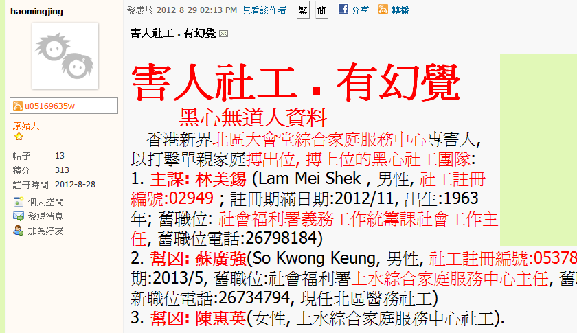 害人社工 . 黑心無道人 : http://www.uwants.com/viewthread.php?tid=15234293&page=1